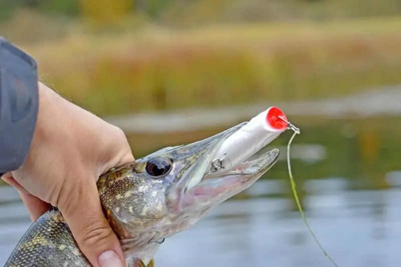 Но то была прелюдия перед эпичнейшей атакой на поппер! Стоило ему приземлиться в воду, как снизу с буруном вылетела щука и с запасом заглотила приманку. Ухх, несмотря на размер было классно! Все-таки ловля на поверхностные приманки доставляет истинное удовольствие от самих поклевок.
