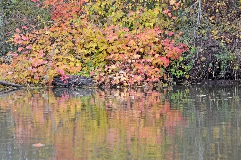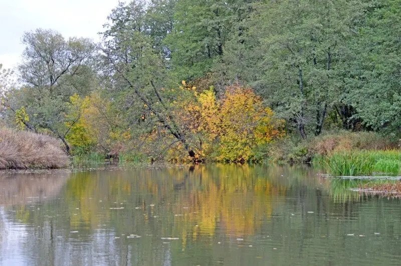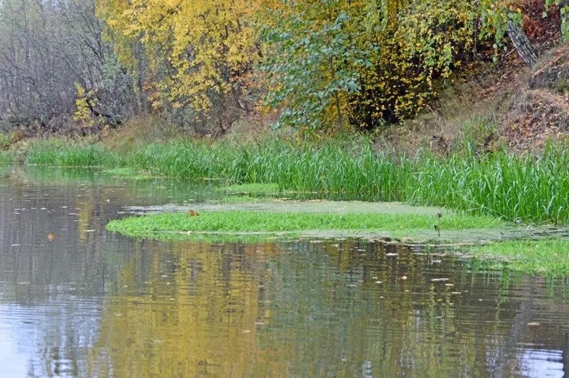 На деле же вот снова она, только в более «кофейно-молочном» исполнении… Берег так заметно утонул, по воде плыли листья с травой, а в самой воде можно было увидеть разве что наше отражение.