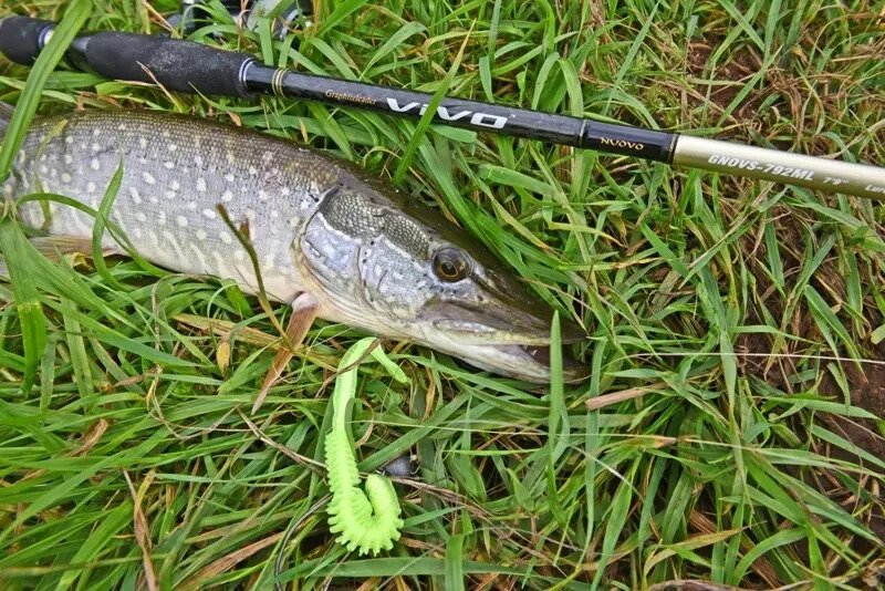 Приехали на место, моросил небольшой дождик, травищи по самые помидоры… Пришли на речку, начали бросать разные приманки. Я взял джерковый комплект (не сработал) и универсальный с Vivo Nuovo 792ML до 22х и воблерно-джиговых приманок.