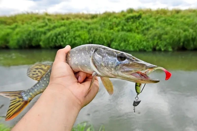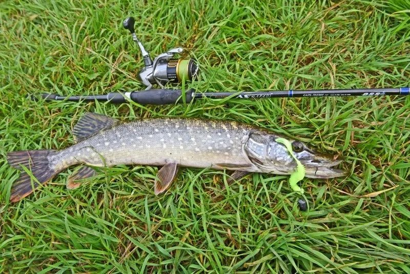 Я встал на точку, стал обкидывать разные приямки и уже стал подумывать сменить раттлин на резину, как на быстром выматывании кто-то остановил проводку. Щука — то что надо!