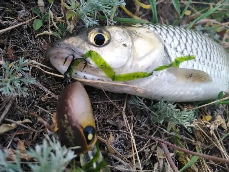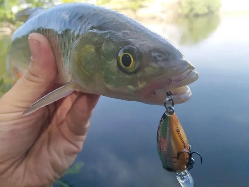 Место, практически под копирку напоминало утреннее, с одной лишь разницей, что солнце оказалось сильно за спиной, и высокие стволы деревьев создавали комфортную тень не только для рыболова, но и голавля, который так же как и я предпочёл спрятаться от невыносимой жары. Основная струя, которая сформировалась под противоположным берегом была настолько сильная, что снова пришлось возвращаться к воблерам, где на этот раз уже выстрелил самый младший Roger от Kosadaka с более амплитудной игрой, и к тому же с отличной дальностью заброса. Правда, размер местных жителей оставлял желать лучшего, но количество и качество этих поклёвок брало верх. Иногда, на очередном ускорении, голавль бил по два раза, тем самым не только подтверждая правильность моих действий, но и радуя эмоциональностью своих атак. Тот самый момент, когда всё было сделано правильно, и можно было просто расслабиться и получать удовольствие от рыбалки...