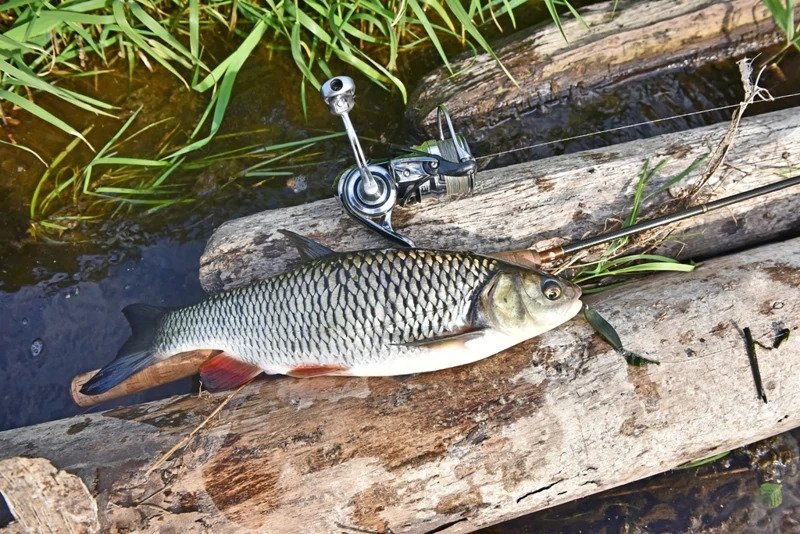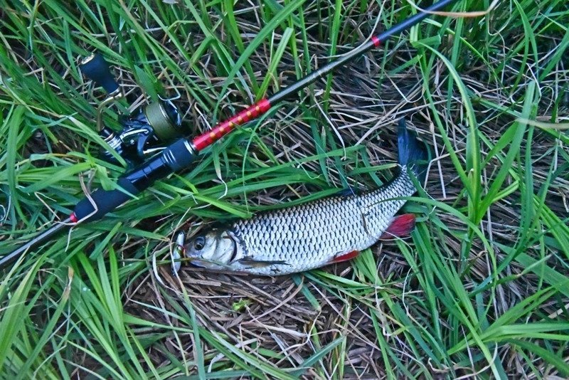 В моменте решил посбрасывать блесну вниз и плавно подал спиннинг вперёд, как сразу же последовал мощнейший удар и вскоре вытащил некрупного голавля. Тактика стала понятна.