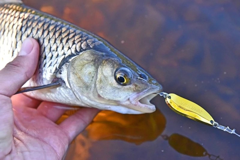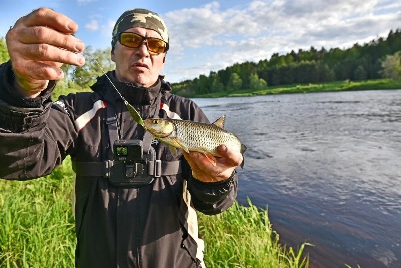 Мои эксперименты тоже увенчались промежуточным успехом — голавль несколько раз от души приложился к тонущему стику, что заставило задуматься об альтернативе блеснам в этот раз. Другие типы приманок голавль игнорировал.