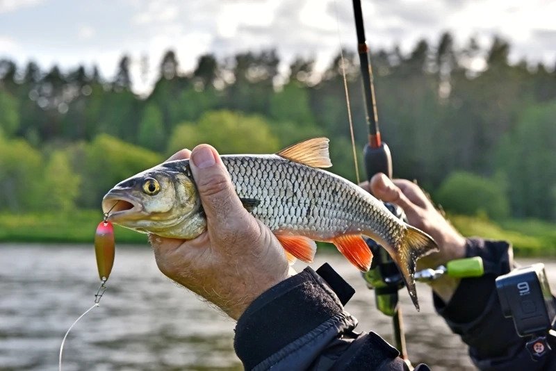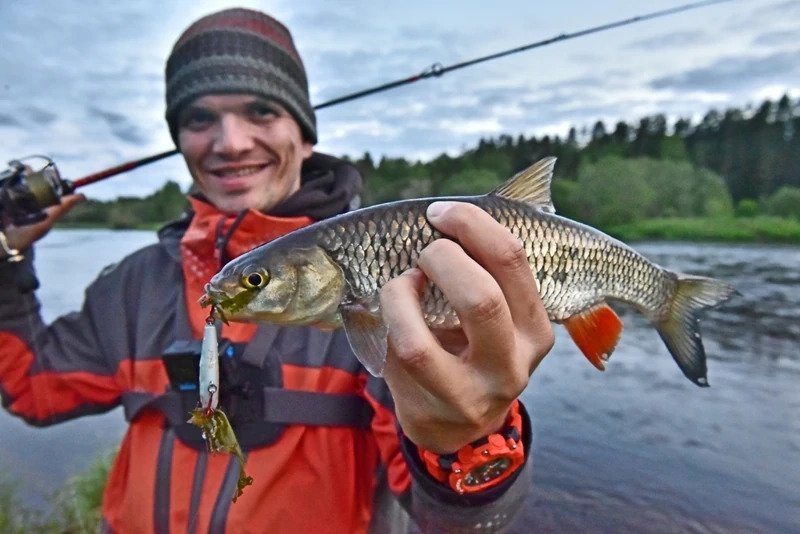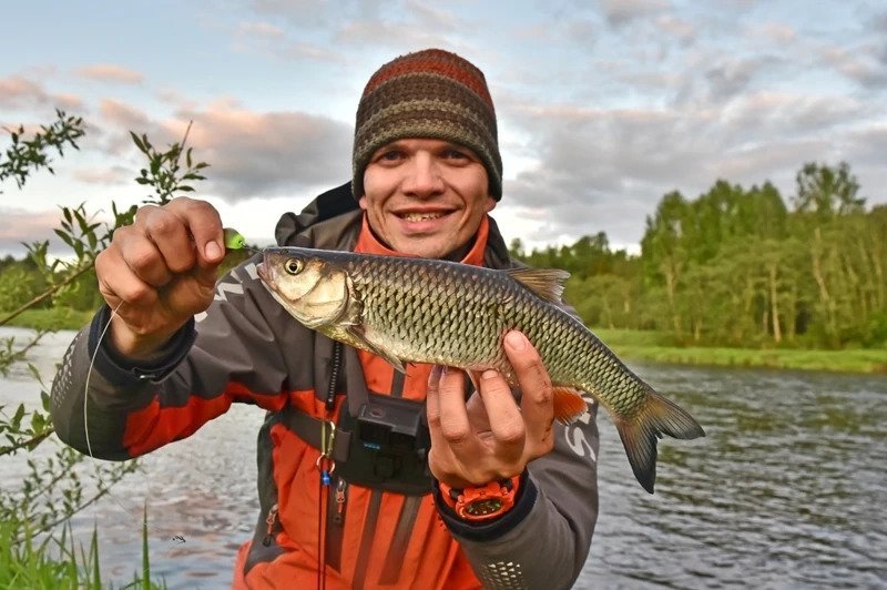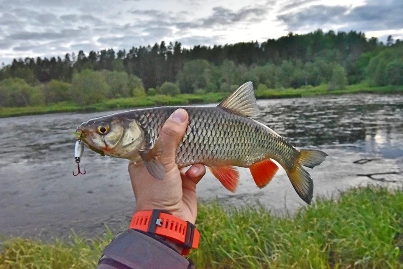 Почти сразу проводка блесны завершилась успешно — сразу тремя видами рыб подряд. Начало положил окунь, потом голавль и щука почти сразу, это был приятный старт. Но после поклевки зависли.