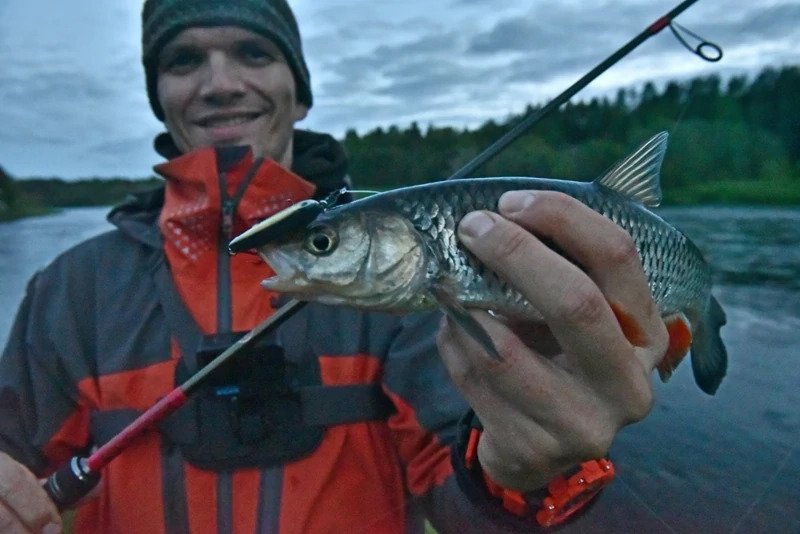 Батя отправился в нижнюю часть переката, я же выбрал верхнюю и встал на заветную точку. Но поначалу не видел ни всплесков рыбы, ни контактов с ней, хотя менял много приманок.