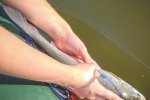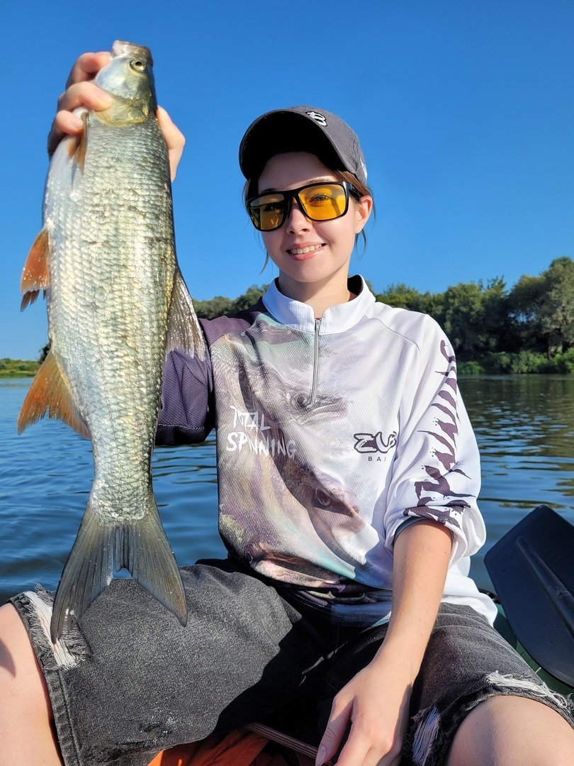 Шикарный летний денёк, активный жерех и самый родной и любимый напарник в лодке. Что ещё нужно???.... К тому же, это первый самостоятельно пойманный жерешок моей любимой дочунькой. И я очень рад, что даже такая небольшая рыбка принесла кучу положительных эмоций моему ребёнку. И дай бог, чтобы она нашла то дело, которое будет её радовать, чтобы рядом были лучшие друзья, и она всегда чувствовала поддержку родных. Я уверен, что её крупная рыба ещё впереди.