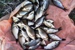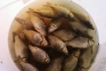 Карась мелкий, но клюет постоянно, размер с ладошку, ну чуть больше.