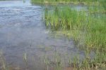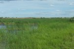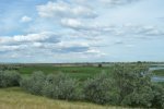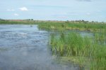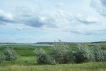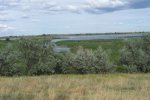 Противоположенный сабуровский берег обрывистый и высокий, есть несколько спусков по осыпавшимся местам с небольшими заросшими полуостровками внизу. Здесь удобней и ловить и спускать лодку, только спускаться по самому берегу не просто и автомобиль придется оставить на самом верху.