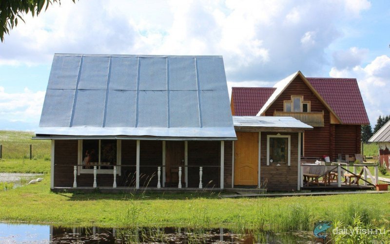 Для комфортного размещения Вам предлагаются: 3 двухэтажных гостевых дома-шале (2 комнаты по четыре места каждая), расположенный непосредственно у пруда с великолепным видом из окон, гостевой домик «Грибок» (2 комнаты по 2 места) и 2 (Ретро) места. Размещение от 400 р. ночь с посетителя.