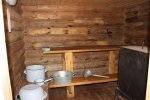 Рядом с музеем находится открытая веранда на 20 мест для банкетов на свежем воздухе. На территории базы отдыха есть возможность самостоятельно приготовить пищу или заказать (завтрак-обед-ужин). На берегу пруда расположена крытая беседка, внутри которой может расположиться группа 6-8 человек.