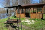 - На нашем озере не только рыбалка, но и отдых с друзьями, семьей, проведение корпоративных мероприятий и различных торжеств на природе (имеются беседки с мангалами, понтон на воде, домик с печкой и отличная баня).