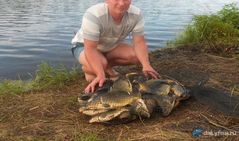 Рыболовный пруд в окрестностях Энгельса. Здесь обитают карпы, белый амур и толстолобик, а также встречаются трофейные