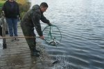 Зарыбляется водоем из года в год: ладожской форелью, карпом, линем, белым амуром, сомом.