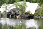 Рыбалка в лесном клубе круглогодичная. Специально оборудованное озеро не замерзает даже зимой. А добытчик, при желании, сможет отогреться в партизанском штабе.