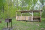 К услугам гостей небольшой деревянный домик с русской баней. Внутри парная, предбанник с большим обеденным столом, холодильник, моечное отделение, санузел, комната отдыха с мягкой мебелью и телевизором. Для пребывания в дневное время суток имеется выбор деревянных беседок разной вместимости. Имеются площадки для установки туристических палаток на берегу водоемов или в лесной зоне. Туалеты находятся на территории.