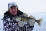 Окунь на заливах Волги. На меляках (поливах) водохранилища и в заливах можно удачно погонять окушков. От палечника до килошника. По перволёдью с большей долей вероятности, позже с меньшей. Сложность охоты на окуня в период после перволёдья в том, что надо очень много бурить и перемещаться. От одной «шишки(мель)» к другой, от одного ракушечника к другом… Зачастую день проходит в бесконечных перемещениях, пока, наконец, не повезет и речной распорядитель не подсунет под вас лунку с активной рыбой. Если есть терпение сидеть и не бегать…, то можно оккупировав одну из известных рыбьих стоянок, монотонно и последовательно «душить» по штучке с лунки, набирая свою норму.