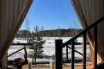 Находится на первой линии. Из окон и с террасы коттеджа открывается прекрасный панорамный вид на озеро и окрестности.