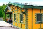 Дом с удобствами и видом на озеро. 2 раскладных дивана, двухспальная кровать, санузел и душ в номере. Стоимость - 4500 руб/сутки. Заезд с 16:00, выезд до 12:00.