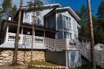 Очень удобный и экономически выгодный вариант, если перед вами стоит выбор — аренда коттеджа в Карелии для отдыха большой компанией или несколькими семьями. На каждый этаж отдельный вход. На каждом этаже: по две отдельные спальни, по обустроенной кухне, по санузлу с душем, просторными холлами.