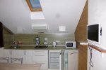 - Кухня, оснащенная 2 плитами (газ и электричество), современной духовкой "Samsung", СВЧ-печью, кофемолкой, кофеваркой, блэндером погружным, электрочайником, 4 холодильниками и морозильной камерой (еще 2 холодильника в номерах и 2 морозильные камеры в сарае), мойкой с горячей и холодной водой. Имеется полный комплект посуды. Самостоятельное приготовление еды возможно при аренде всего дома или же по согласованию с хозяином базы отдыха.