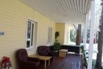 - Гостиная: один раскладной диван (2 места), спутниковое ТВ, оборудованная кухня, холодильник, санузел, сауна.