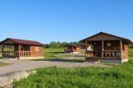 Каждый домик имеет открытую веранду с большим и удобным кухонным столом со стульями. Рядом с коттеджем находится мангал.