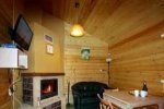 - совмещенная с кухней гостиная: камин, удобный кожаный диванчик, стол, стулья, LCD - телевизор с ресивером спутниковых каналов Триколор;