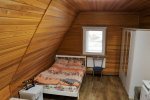 В 2-х этажном коттедже №2 (круглогодичное проживание) имеется мягкая и корпусная мебель, 10 спальных мест (постельное белье и полотенца прилагаются), спутниковое TV -кондиционер, посудомоечная машина, холодильник, микроволновая печь, посуда, камин в рабочем состоянии, 2-е мансарды (открытая и закрытая), мангал, беседка, баня(с подачей озерной воды), артезианская скважина. Стоимость проживания - 10 000 руб за дом.
