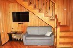 В коттедже - студии №1 (летнее проживание), с трехсторонними панорамными окнами имеется мягкая и корпусная мебель, 4 спальных места (постельное белье и полотенца прилагаются), кондиционер, посудомоечная машина, холодильник, микроволновая печь, посуда, спутниковое TV, мангал, беседка, баня (с подачей озерной воды). Стоимость проживания - 4 000 руб за дом.