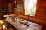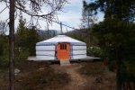 Зона барбекю. Бурятский шатер на 6 мест. Расстояние от домов до источника напрямую 800 м. (обустроена тропа), через территорию самой водолечебницы 1400 м. Небольшая удалённость от горячего источника ещё один огромный плюс этого места, вроде как и рукой подать, а в тоже время и нет толп людей. На базе имеется хорошая банька с парной. Есть возможность поиграть в волейбол, футбол, бадминтон, шахматы и шашки. Для детей есть надувной бассейн.