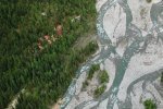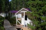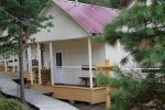 Территория турбазы гармонично вписывается в окружающий горный ландшафт и «утопает» в зарослях брусники, малины, смородины, жимолости, разнообразных горных кустарниках и цветах. С высоты полета кажется, будто кто-то аккуратно рассыпал домики посреди тайги.