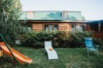 Беседка, стоящая на рукотворной полянке на берегу реки в тени огромных старых ясеней, подарит вам спокойствие и отдых после активного времяпрепровождения.Также на территории рыболовной базы отдыха "Дом в дельте" имеется детская площадка с качелями, шезлонгами, теннисным столом.