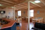 Внутри здания базы есть кафе и бильярдная. На территории есть летняя веранда; баня до 6 человек.