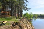 Организовано питание, работает стильное кафе, на территории установлены мангалы для приготовления копченостей и шашлыка. На территории имеются беседки которые можно арендовать на сутки и установить палатку рядом с беседкой.