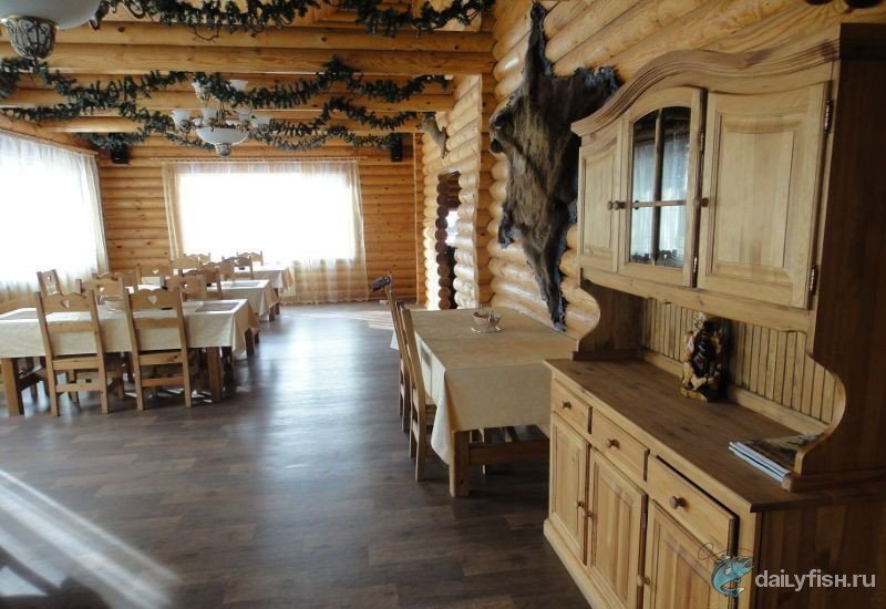 Для проживания на базе гостям рады предложить современные деревянные дома с отличными номерами, а также двухэтажный коттедж, в отдельных номерах которого могут разместиться от двух до четырех человек. Единовременно рыболовно-охотничье хозяйство способно принять группу гостей до 50 человек, что очень удобно для проведения семинаров на корпоративных выездах за город.