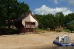 Есть несколько площадок для комфортного времяпрепровождения: ресторан с зоной отдыха, большая беседка и чистый песчаный пляж.