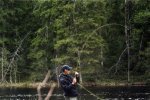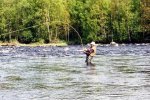 Ловля хариуса в омутах и на течении. Рыбалка на озере Хирвисъярви.