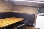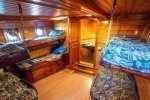 Это судно для комфортной ловли группы до десяти рыбаков. Открытая носовая палуба, удобная кормовая часть с сидячими местами позволит гостям удобно расположиться для рыбалки вдоль всего борта и разместить рядом пластиковые ящики для рыбы. На обратном пути с моря к причалу вы сможете почистить рыбу на столе-рыбоделе и промыть ее забортной водой из шланга. На судне есть каюта со столом и диваном вокруг него.