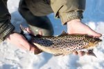 Организуем зимнюю рыбалку на озерах в районе р. Кица, в верховьях р. Териберка и в районе р. Медвежья. В зимний период вашим уловом здесь могут стать: кумжа, сиг, окунь, щука и налим. Транспортировка от нашей рыболовной базы к выбранному месту лова происходит на автомобилях и снегоходах.