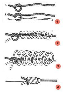 Более жесткий материал, а это поводок, складывается вдвое. В результате получается петля, через которую пропускается конец «плетенки», длиной около 10-ти см. После этого, свободным концом шнура делается 7-10 оборотов вокруг петли из флуорокарбона или монолески, после чего этот же конец «плетенки» пропускается в обратном направлении, через ту же петлю. Узел затягивается, а лишняя леска обрезается.
