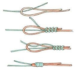 Можно дать еще один дельный совет: при завязывании узлов, последние должны быть смочены, хотя бы слюной. Это немаловажный фактор, увеличивающий надежность узла. Дело в том, что в момент затягивания узла, происходит процесс, который вызывает, нагрев лески в местах соприкосновения. Повышение температуры хоть и кратковременное, но существенное. Это может привести к тому, что шнур или леска может изменить свою структуру в местах соединения и потерять часть прочности. Это, в свою очередь, может привести к обрыву поводка, тем более, что он имеет, гораздо меньший диаметр, по сравнению с основной леской.