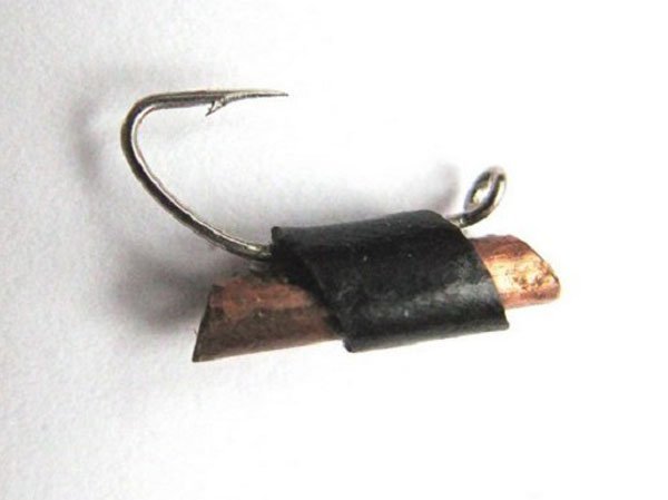 Диаметр кембрика выбирается таким, чтобы в него свободно входил крючок и кусочек тонкой, желательно вольфрамовой проволоки. После одевания кембрика на крючок, в него еще вводят и проволоку, которой этот кембрик наглухо закрепляется на цевье крючка. Кембрик можно отрезать под прямым, или любым другим, углом, что, в свою очередь, будет менять игру самой мормышки.