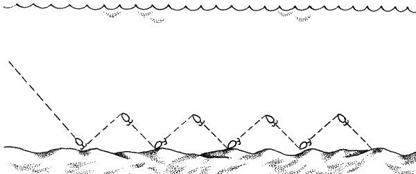 Ступенчатая проводка состоит из отдельных ступеней, когда приманка опускается на дно, после чего ее поднимают от дна, а затем опять опускают, но уже не на дно, а чуть выше. И так, ступенька за ступенькой, с медленным подъемом производится проводка. Этот вид проводки отлично подходит для техники лова воблерами, колебалками и джиг приманками.
