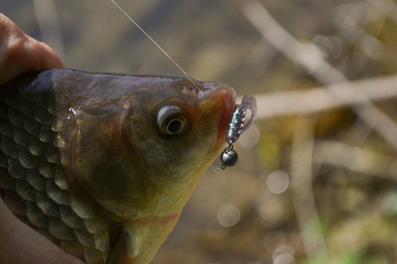 Поскольку карася планируется ловить на микроджиг, то нужно применять силиконовые приманки самых малых размеров. Причем приманки должны быть из съедобного силикона.