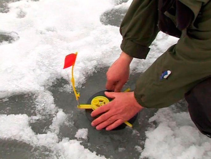После того, как снасть установлена, лунка присыпается снегом или накрывается чем-то другим, чтобы она не замерзла, в противном случае, леска не сможет беспрепятственно сматываться с катушки или ее вообще обрежет кромкой льда. Лунки желательно закрыть еще и потому, что к таким лункам не боится приближаться более крупная щука.