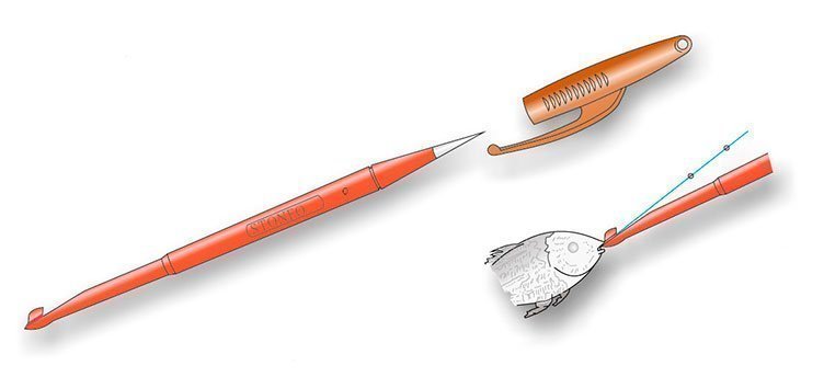 Модели экстракторов в виде иглы пользуются большой популярностью у рыбаков, поскольку они надежные, легкие и компактные. К тому же, с их помощью легко вытащить крючок из пасти даже очень маленькой рыбы, такой как верховодка, например. Очень часто рыболовы вешают его на шею на резинке, что позволяет намного быстрее им действовать. В таком положении он абсолютно не мешает рыбаку, поскольку достаточно легкий.