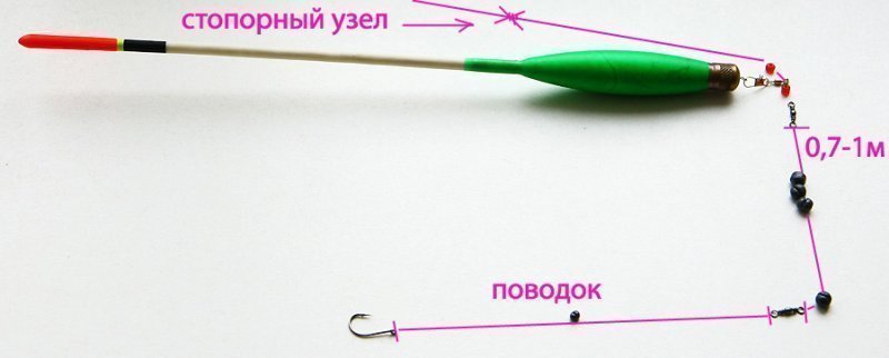 Если предполагается ловить рыбу на больших глубинах, то поплавок крепится подвижно на основной леске: