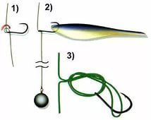 Отмерив от груза 30-70см можно привязать крючок. Как было сказано выше – это может быть любой тип крючка по желанию и по возможностям. Крючок привязывается непосредственно к леске. Какой лучше использовать для этого узел, можно узнать в интернете, где можно не только прочитать, но и увидеть наяву, как это делается.