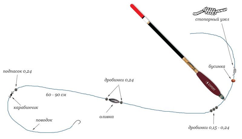 Грузило должно иметь определенный вес и быть как можно меньшим и компактным. Этого можно добиться при ловле на стоячей воде, но при этом следует помнить, что очень легкую снасть далеко забросить не получится, поэтому очень важно правильно подбирать и грузок и остальные элементы оснастки. Основное грузило устанавливается таким образом, чтобы оно скользило по леске, тогда можно будет заметить, любую, даже очень осторожную поклевку, при этом грузило должно быть темным, но не блестящим, чтобы не создавать бликов в воде.