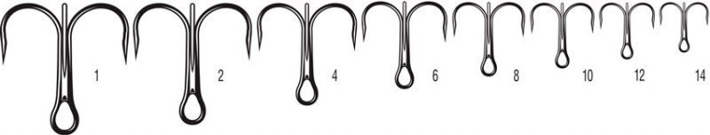 Тройники выбираются такого же размера, как и крючки – это №1-4 и обязательно с длинным цевьем. Идеальный вариант – это вариант, когда один из тройных крючков имеет меньшие размеры.